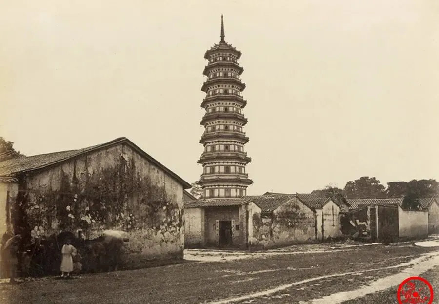 这座花塔搁广州老城区扎根久了,八角九层,直直地冲天而起,墙脚一圈黑瓦,灰白的墙皮斑驳像老人的手,母亲小时候在广州住过几天,“一抬头老远都能看见那塔尖”,说着就咯咯笑,用力一指当年的方向,现在高楼盖得影子都遮住塔身了,花塔还矗着,周围全变了。