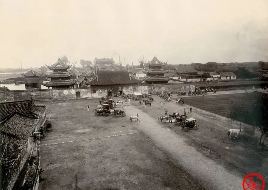 照片里龙华寺廊檐起伏,地面宽敞,牛车穿梭,城门口有人聚着聊天,老钟楼边上还有青铜大钟,那铜钟可是“沪上八景”之一,老上海人爱念叨,小时候路过龙华寺,小贩拉着糖葫芦绕着寺庙吆喝,现在都市里钟声听不见了,只剩照片里的热闹还能撞进脑子里。