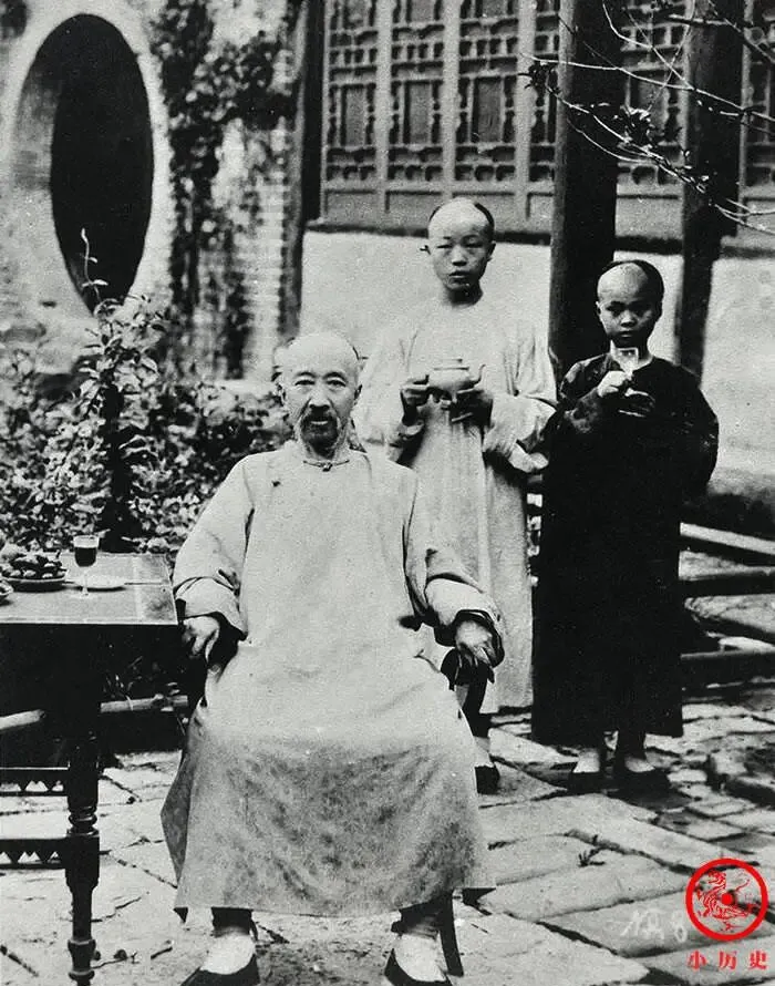 别看身后院落清幽,前排老者那股子气势一点不减,这就是湖北的那位张之洞大人,不穿朝服,也还带着大员的派头,左右童仆恭恭敬敬伺候着,端茶递水全都贴合规矩,桌上杯盏、点心一摆,都是讲究人的排场,老妈常说,穿便装坐自家院里喝一碗香茶,那样的日子才自在,现在的领导下了班也想不到有这等讲究,大概身份就是随时在那儿,穿啥都带着场子。
