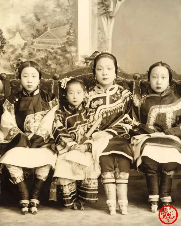 图里的四个女孩,脚上裹的都是“三寸金莲”,瘦小的脚尖包得紧紧的,小腿微凸,穿一身华服坐得挺直,小时候听外婆说她自己缠脚,头晕眼花疼得满床打滚,男人们图个“好看”,却苦了姑娘们半辈子,脚变形,路都不敢多走一步,现在想想,这习俗真不是滋味,小小年纪受这个罪,腿脚落下的毛病,一直到晚年还拄拐杖走。