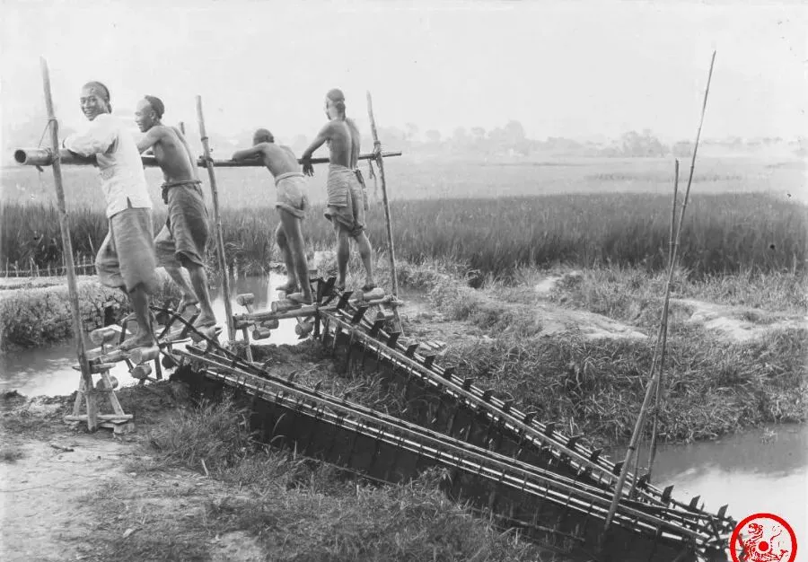 最后这张是龙骨水车,灌田的时候人踩着板,吱呀吱呀,一边转一边提水上坡儿,几个小伙子光着膀子,肩臂上的劲儿都憋到水流声里,小时候在田埂边看着叔伯们踩水,水花翻上来溅一裤腿,电动泵一流行,这玩意就搁仓房顶上落灰了,有人感慨“机械泵方便,龙骨板上再也听不到咯吱响”,谁家要是真留着一架,那可是地里的古董了。