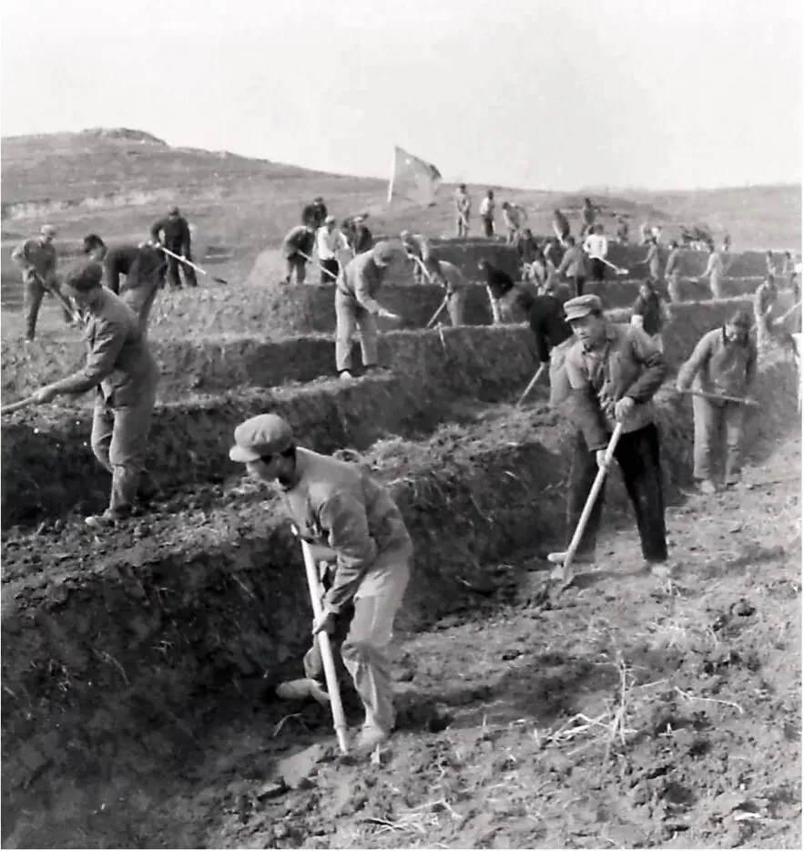 白清寨公社知识青年修建梯田,大力发展农业生产。照片拍摄于1972年。
