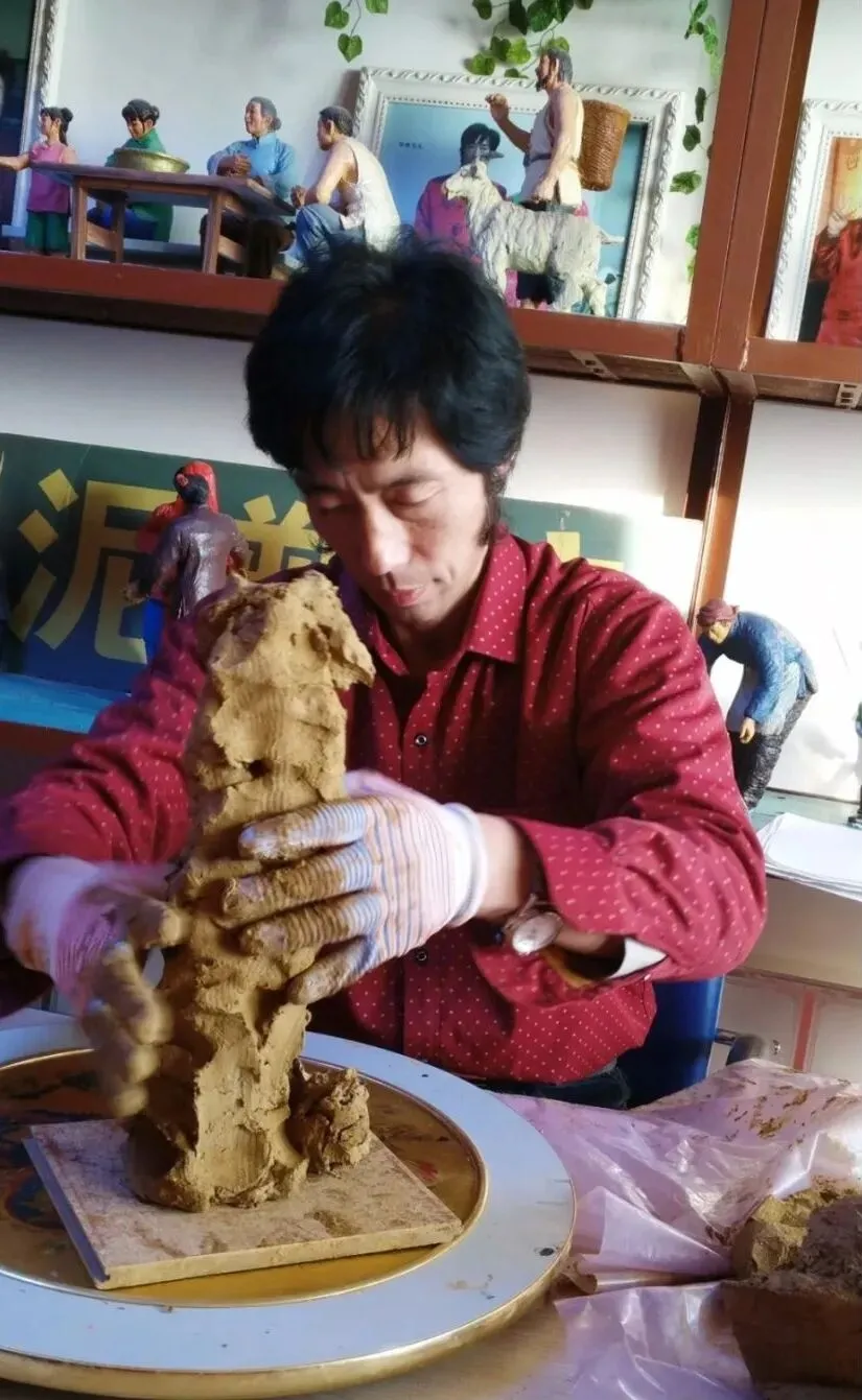 白清寨泥塑技艺第三代传承人李常武在展示泥塑技艺。白清寨泥塑技艺是沈阳市非物质文化遗产代表性项目,传承百余年,以表现故事场景见长,通过众多人物或立,或坐,或跪,或抱,或昂首问天,或低头劳作等动态设置,附以道具布景,还原或创造某一特定故事情节,人物形象生动,场景真实自然。白清寨泥塑技艺用的是普通的白清寨黄泥制作。