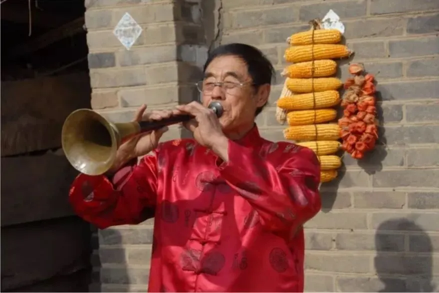 白清寨传统唢呐第三代传承人李子芬在演奏唢呐。白清寨传统唢呐是辽宁省非物质文化遗产代表性项目,历经100多年的传承,形成谱系清晰,脉络明了,传承五代的特点,在辽沈地区传统乐器中占有重要地位,是传统乐器的代表。现有传承人16人。