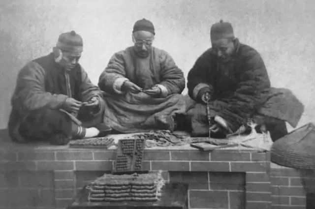 老照片:清末夫妻合影,地主坐炕头数钱,见证真实生活
