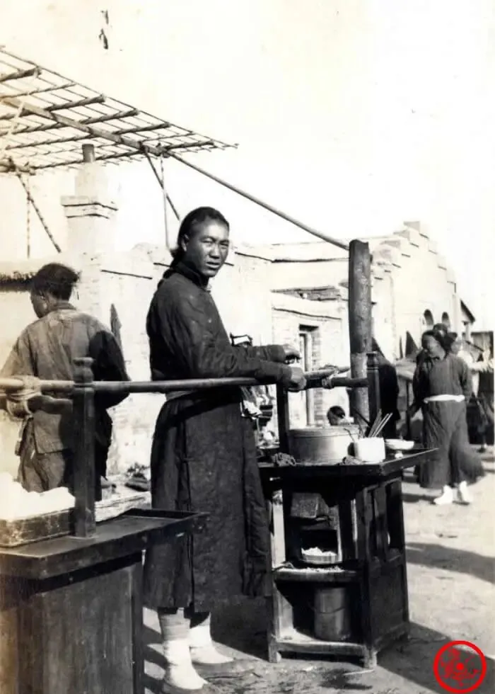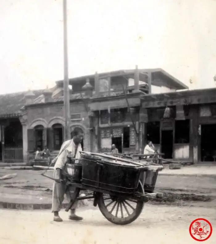 老照片里这个人正撅着身子推独轮车,车上两个水桶咕咚咕咚晃,过去北京没有自来水,家家户户吃水靠买,巷口的水井打出来的水苦,只能找水夫从几里外挑饮用水,风里雨里都得干,挣钱不多,累是真累,爷爷说水夫干的就是力气活,少了他们,那年月日子都要瘫。