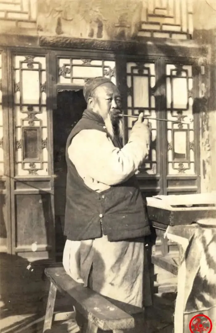 照片里这个身形魁梧的老汉,坐案边抽着旱烟,前面桌子上码着一盒盒香烟,那会儿洋烟贵得很,抽得起的全是有钱人,老一辈更认旱烟这口,说香烟没劲,不顶事,边抽边和身边人唠家常,小院门一开一合,日子就这么慢吞吞过。