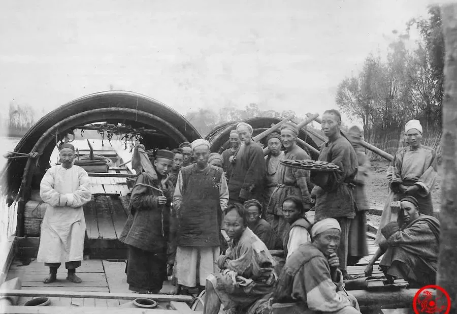 一大帮人围在船头,身上衣服全都是补丁摞补丁,冷风一吹全往身里钻,最右侧还有人捏着船桨,爷爷说,这行可苦,多少年都熬着拉纤撑船,船老大的脸上都是皱纹,眼神死死盯着远处,穿着几十年都舍不得换,和现在动不动穿新衣裳比,实在太扎眼了,那会儿拉船的多,富人一船吃喝讲究,工人一身寒酸,汗水和泥水全浸在衣服上,穷是真穷,没一点面子话能说。