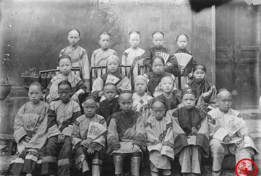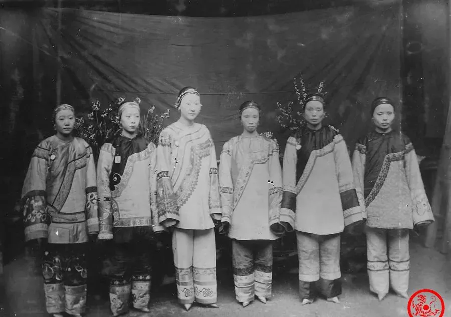 这一排女人站得齐刷刷,衣裳一水的绣花镶边,你招呼她们一声,也许个个都规规矩矩低头不多看人,图中这些不是同一家,是资州的大户人家,大家最关心的都是她们漂不漂亮,说句实话,穿得体面不假,脸蛋儿真不似如今那种戏台子的美人,讲究身份出身,模样全靠家父母挑选,纳妾挑个水灵的,老婆只认家世,这里面份量最重的一个也未必讨得了好日子,奶奶伸手指一指说,这种盛装不是随便穿的,节庆才拿出来晒晒,穿上沉甸甸,出门头顶都直不起来,现在人讲究美丽自信,那时候想的是不出错就行,和戏里唱的不是一回事。