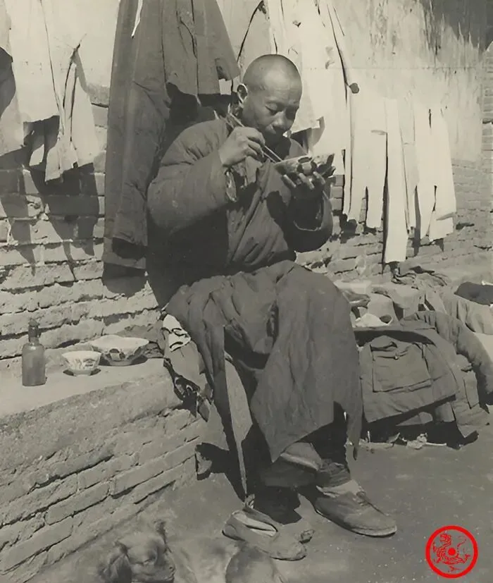 图里这位老人,手里攥着一件叠得蔫儿巴巴的大棉衣,身上穿的也是洗得泛白的旧袍子,说起来这些个大棉袄棉裤,在估衣铺里头算是“硬通货”,老百姓花钱买的就是穿着结实,经得住下地起炕,有时真赶上大冷天,谁家没棉衣,都是东家借西家,扛一冬天下来浑身都是“老棉花味”,这种味儿你要是真闻过,转身就知道啥叫“生活”。