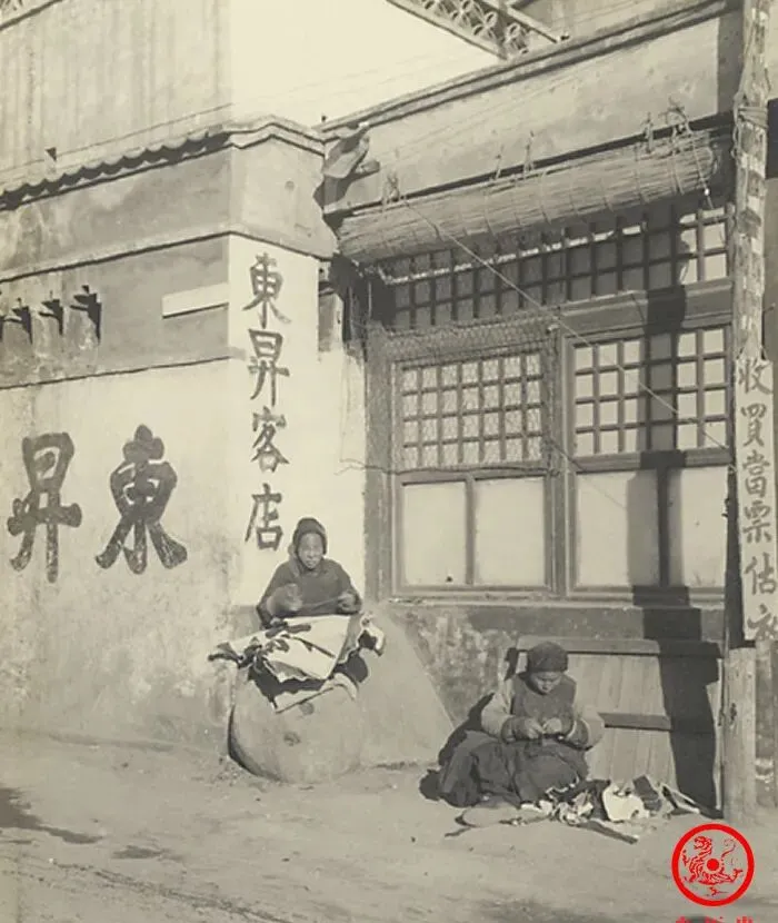 东升客店门口这俩妇人,说不上买卖人还是顾主,反正一人一堆碎布料,太阳底下坐着边择衣边说闲话,那会儿布头舍不得扔,破旧棉袄拆下来还能改做孩子的夹袄,边角有点绒的还捡出来装枕头,一件旧衣在她们手下起码得用三轮,旁人看着不起眼,她们自己都知道这点“省”和“过”的门道。