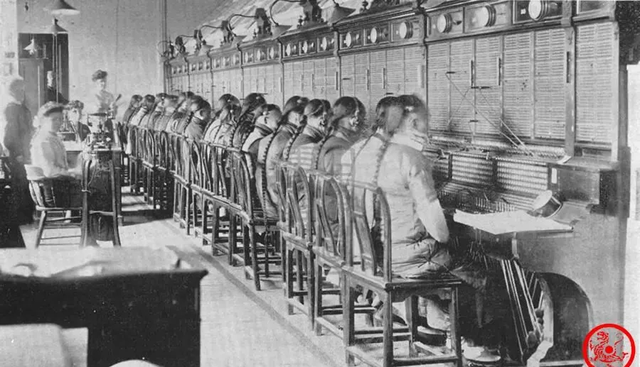 图中一排长辫子小伙,坐得笔直,头都埋在接线台前,这叫电话接线员,全是清末上海华洋德律风公司干活的,脊背挺直,手里飞快插拔,靠嘴连线,那时候电话稀罕物,一屋子人能服务几千户就不得了,妈妈小时候还和我说过,看见这种场面肯定傻眼,现在的小朋友都不知道什么叫人工接线,谁用谁新鲜,当年“水西遥隔语言通”,一句广告词贴在墙上一年不掉,电话成为了大买卖大商家抢着装的玩意。