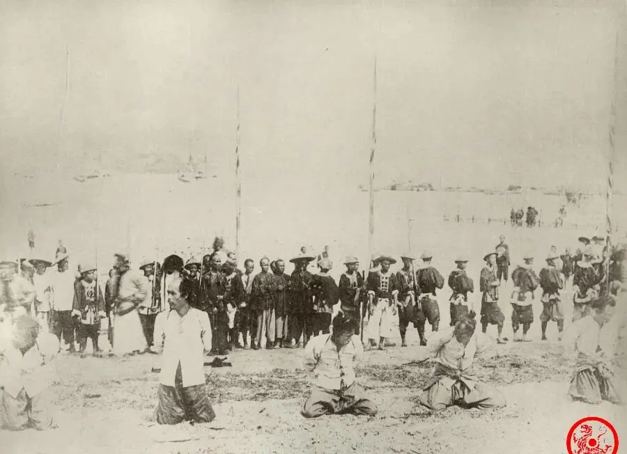 说到狠场面,这张照片是江洋大盗跪地待处决,地上几行汉子膝盖磕着地,手被反缚,全是当年闹过南武号劫案的主脑和喽啰,背后看热闹的人把圈围得严实,衙役撑着腰,提刀有人、看热闹的更多,那年代大案一落幕,场面得隆重,谁也跑不脱,执行时场面肃静,下手却丝毫不含糊,父亲翻老书说,这样的阵仗镇住一条街,打小见了娃都吓得不敢哭。