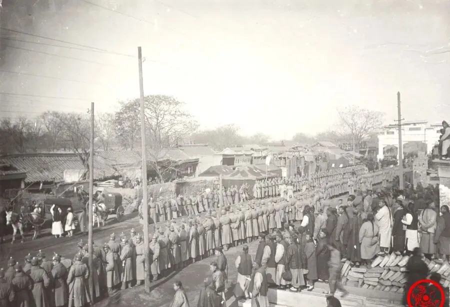 这个大场面是克林德牌坊落成典礼,一队队人站成长龙,帽檐齐整,官员挤在队伍侧边,周围百姓把道路挤得水泄不通,这种动静用来给某人办事撑门面,消耗掉白花花的银子不说,还能留下一个历史记号,现在想来那气派里也不全是风光,往细里看全是各方势力争排场。