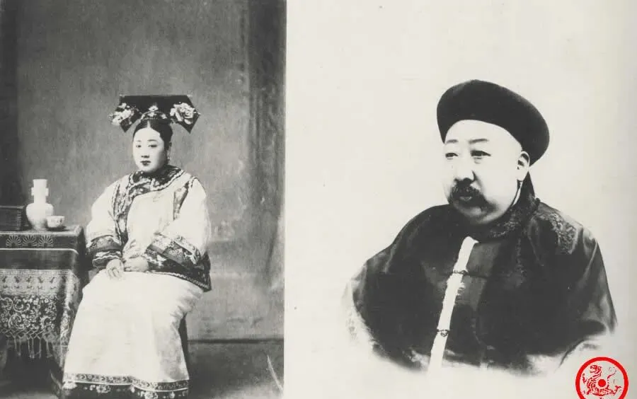 左边端坐的是晚清重臣那桐的夫人,一身官家气,右边黑帽圆脸就是那桐本人,官袍穿得齐齐整整,脸上肉一堆,看着挺富态,这位老人家当年可是当官手辣,钱抓得紧,爷爷说“有钱的不一定逍遥,但逍遥的十有八九有钱”,也是那个年份特有的滋味,地位高、银子多,京城里头都能叫上名。