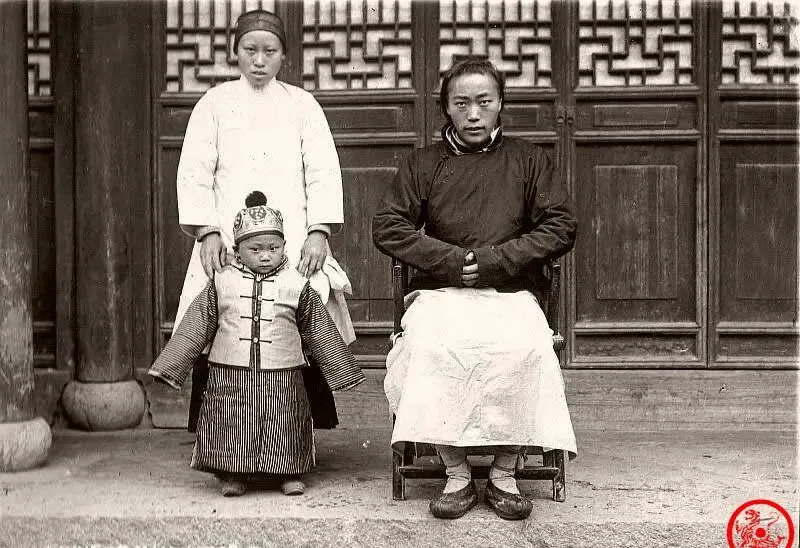 这是一家三口的全家福,男人坐正中,板着脸双手交叠在膝,女人傻站身后,白衣窄袖两手搭住孩子肩膀,男孩裹得厚重,小帽子仁义道德地横在头顶,旧时拍照是件新鲜事,一年才有这一次,屋里磨出来的地板、门扇全是岁月的痕迹,家里头一有团圆的时机就想留个念头,父母都摆着架子,只有小孩子看不出拘束,抿着嘴眼珠打量镜头,咱们小时候家里头有照片都藏在箱底,翻出来赶紧又压好。