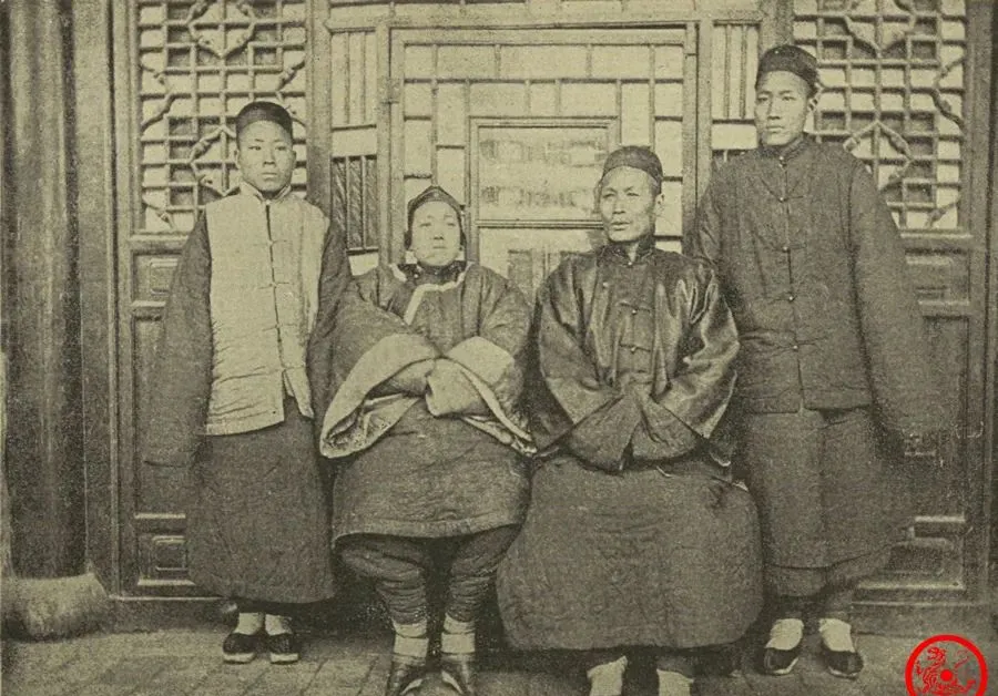这张老照片里站了四个人,一家老小,是老老实实摆拍的,中间年纪最大的坐着,两边年轻些的垂手站定,衣服宽厚,裤腿大大,头上帽沿一圈,脸色有点局促,咱小时候家里也有几张老旧团圆照,爸说那时候拍照算是大事,衣裳要最好的,鞋也擦得光亮,场面打点齐了才能合个影,在外奔波的也会赶回来,就怕漏下谁。