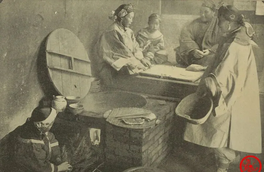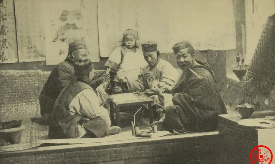 晚清老照片:私塾师生上课,炕头打牌,做针线聊家常