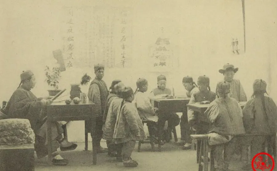 这个场面够经典,一屋子学生,前头塾师悠哉坐着,桌上茶碗毛笔整齐留着,有个半大孩子还站着赶跟不上进度,墙上挂着字画,书气倒是满满当当,以前孩子读私塾,先学“三字经百家姓”,先生板着脸,竹戒尺一拍声音清脆,谁犯困了脑袋挨一下,家长也得鞠躬道谢,那会儿能读书的娃娃不多,老一辈见到书箱都说:念过私塾出息大。