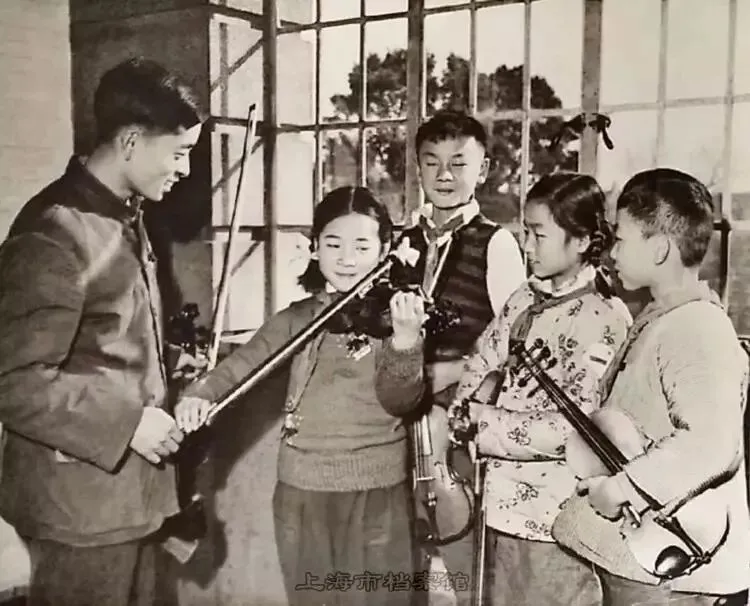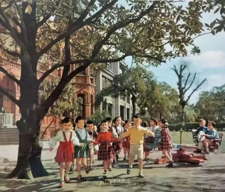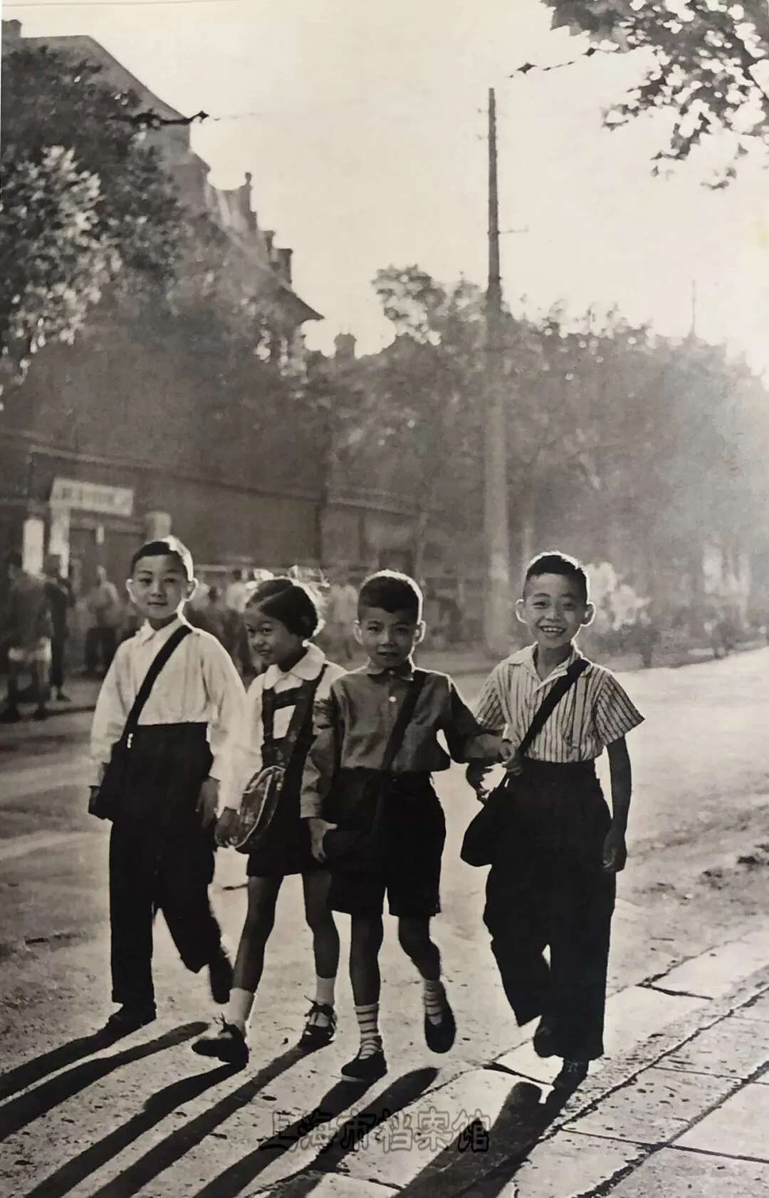 1950年代,弄堂里的小旁友手拉手一道去上学↓