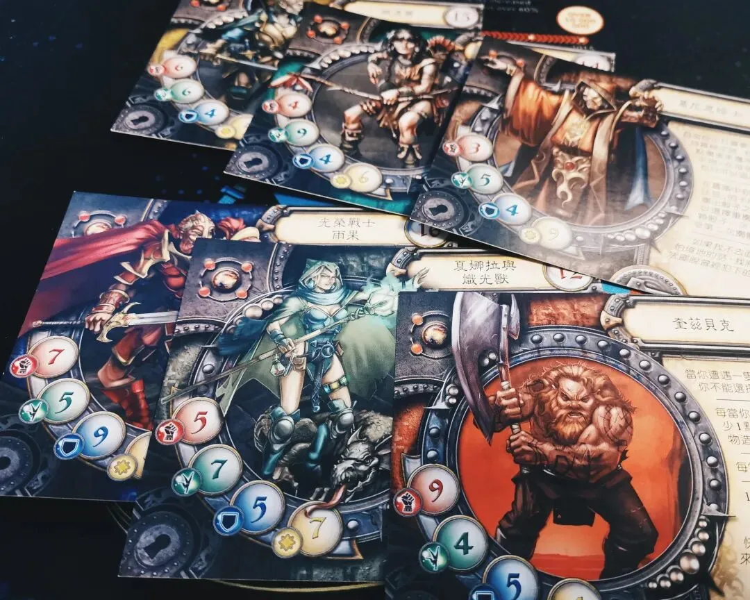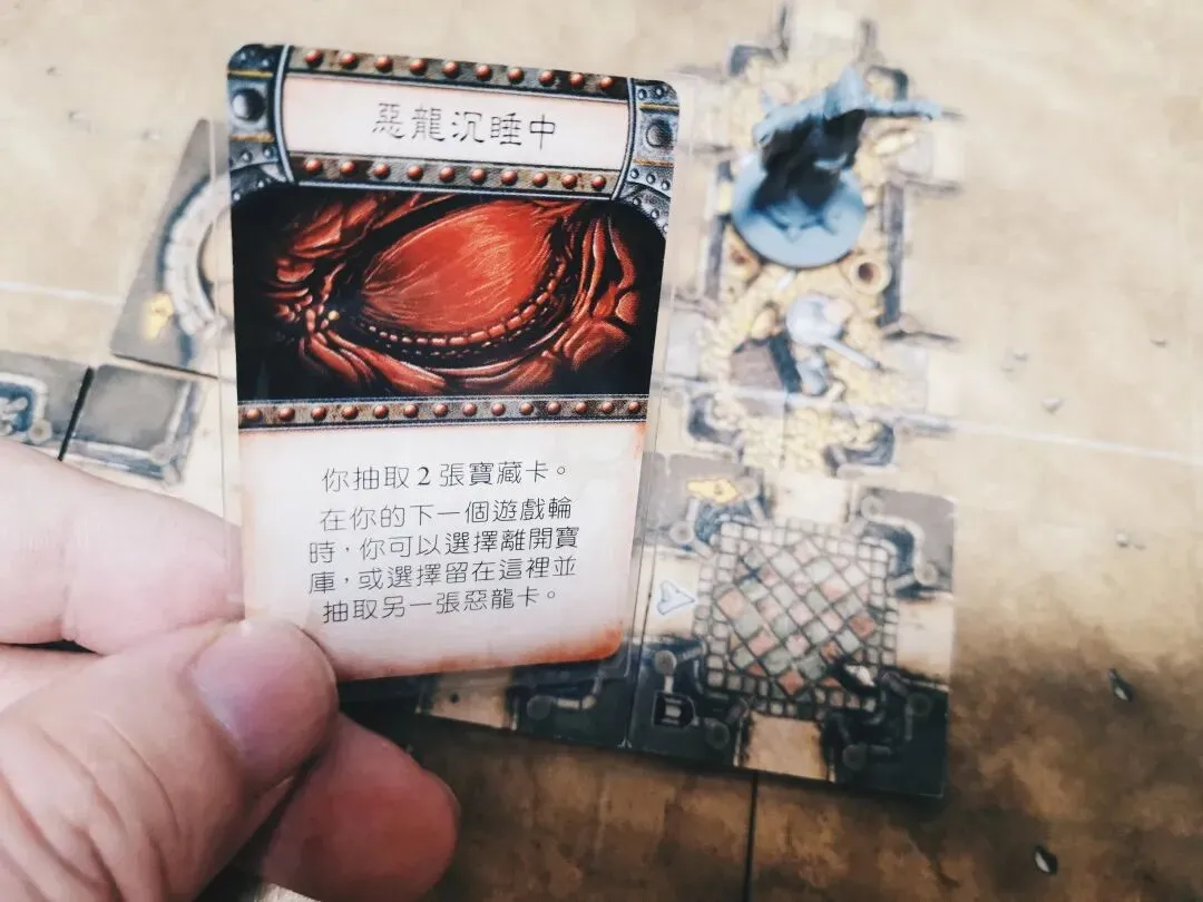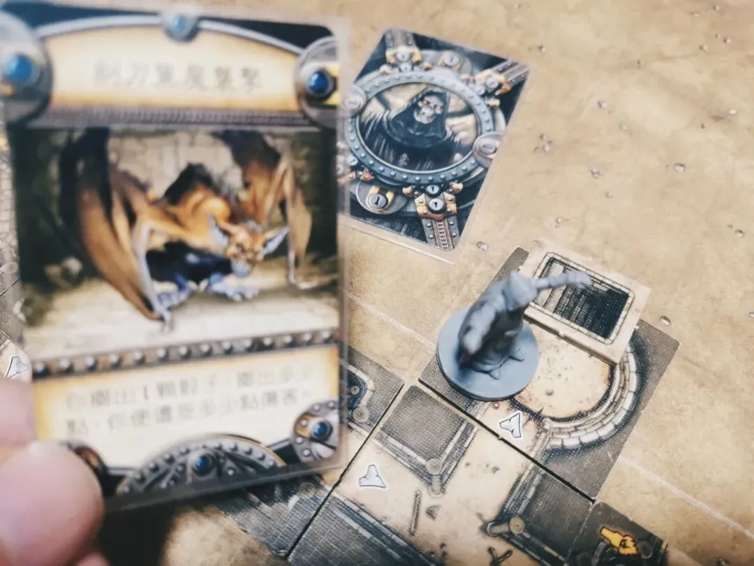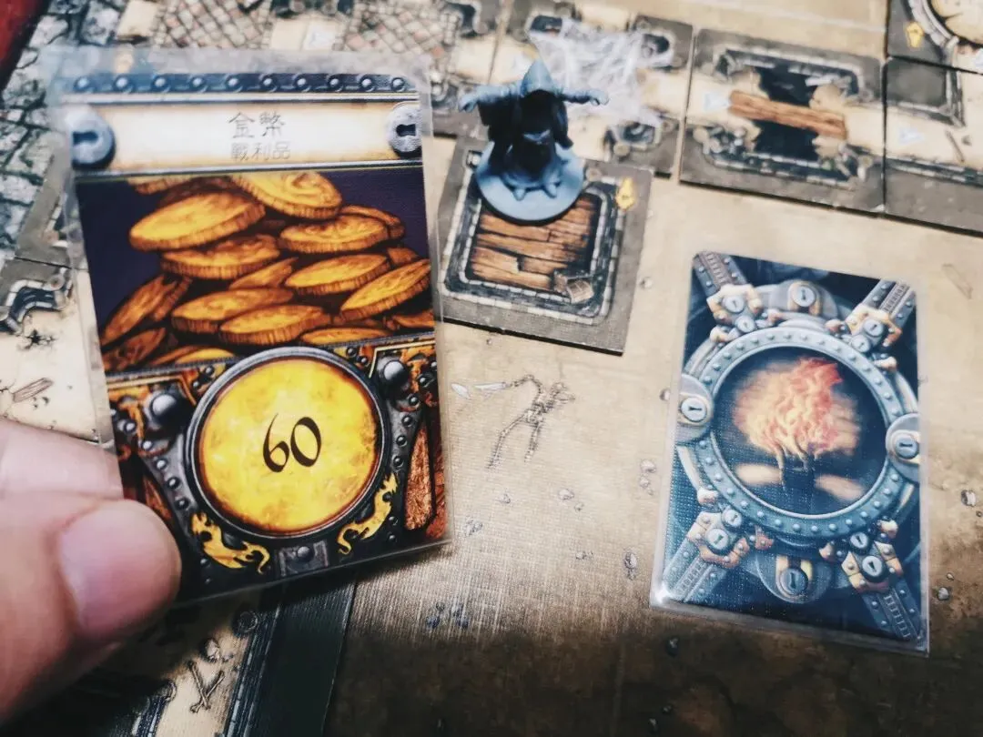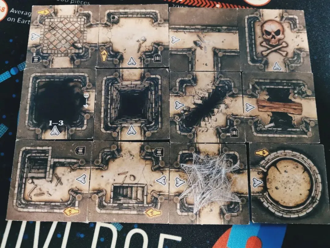 游戏中的板块细分下来差不多有十多类,比较瓜三的板块有像死路,这意味我们辛辛苦苦探索的板块眼看就要到龙穴了,却是一个死胡同,只能调转头再次探索;再比如坍塌的板块,前路已断,还得检定敏捷,躲避坍塌的碎石块;再比如可怕的陷阱板块,进入后会抽取陷阱卡牌堆,五花八门的陷阱能让你痛不欲生,比如索命摆斧,灯叔就曾经在他下面被终结了一次小命,可能除了圣骑士之外,其他英雄都很难通过他的防御检定;但最可怕的是无敌深坑,进入后会进入运气检定,一旦失败就直接坠入黑洞死亡离开游戏。。。