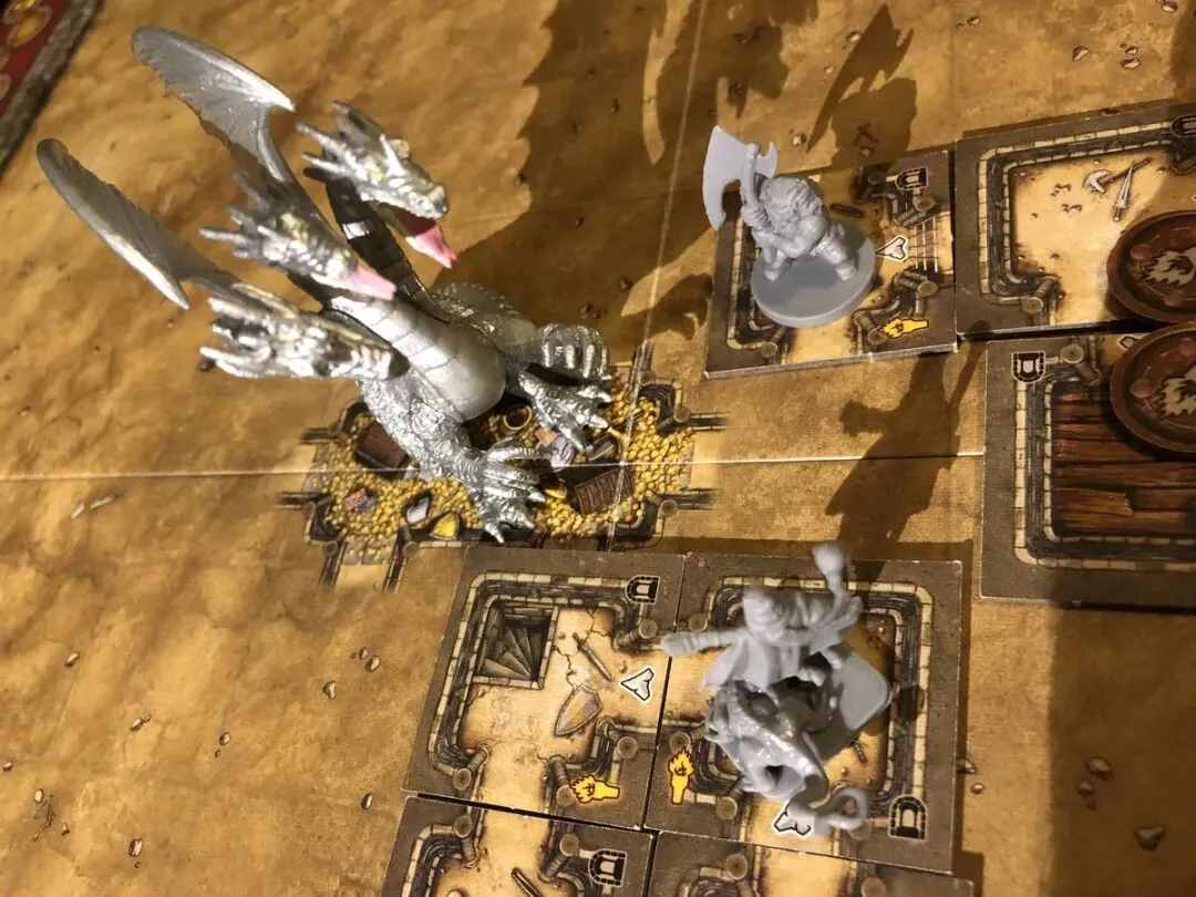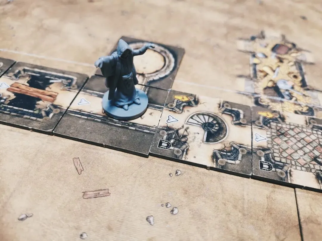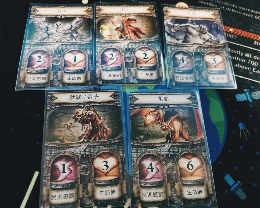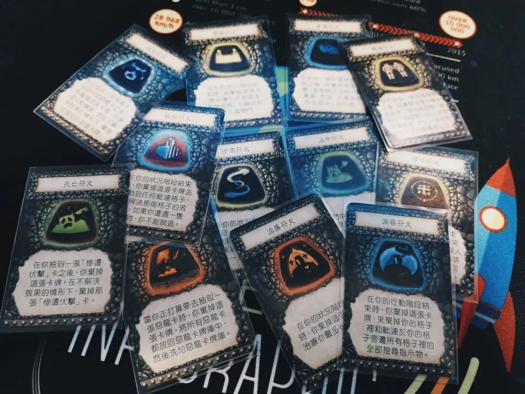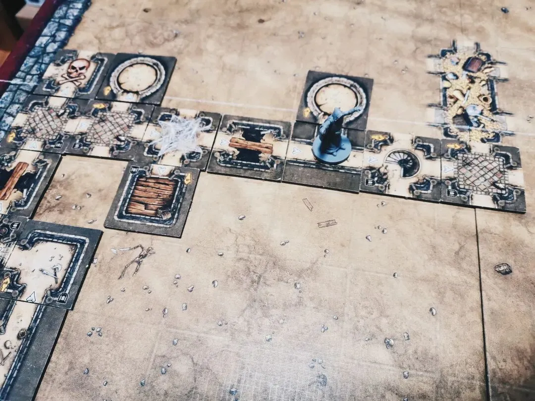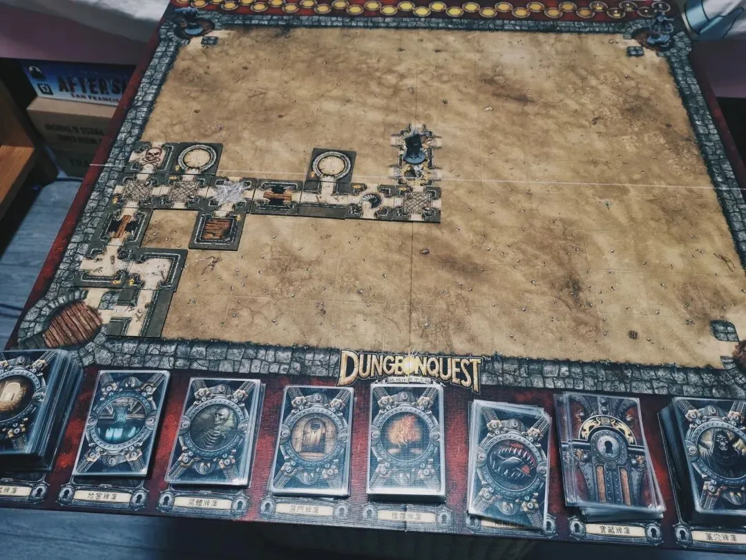游戏中的板块细分下来差不多有十多类,比较瓜三的板块有像死路,这意味我们辛辛苦苦探索的板块眼看就要到龙穴了,却是一个死胡同,只能调转头再次探索;再比如坍塌的板块,前路已断,还得检定敏捷,躲避坍塌的碎石块;再比如可怕的陷阱板块,进入后会抽取陷阱卡牌堆,五花八门的陷阱能让你痛不欲生,比如索命摆斧,灯叔就曾经在他下面被终结了一次小命,可能除了圣骑士之外,其他英雄都很难通过他的防御检定;但最可怕的是无敌深坑,进入后会进入运气检定,一旦失败就直接坠入黑洞死亡离开游戏。。。