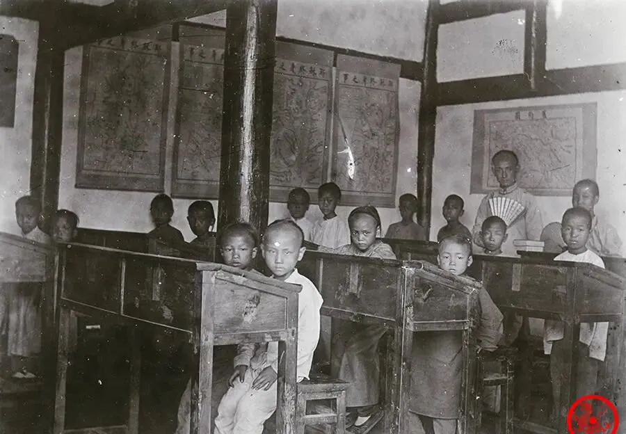 一间昏暗的屋子里坐了一排娃娃,这不是老私塾,是洋人开的新式学堂,板凳和桌案拼成一块,中间多少有点不整齐的意思,老师后头摇着纸扇看着大伙。那年头新学堂刚刚兴起,清廷一下子脑子开窍,鼓励大家都去学点洋东西,丢了科举那一套,孩子们教的书也换成新皮的,家里当时有孩子能赶上这样的一批人不多,照片里眼神稚嫩,身子骨坐得挺,没什么说笑,讲究的是背书写字,气氛安静得很,前排的同学估计还在打暗号偷摸着乐。