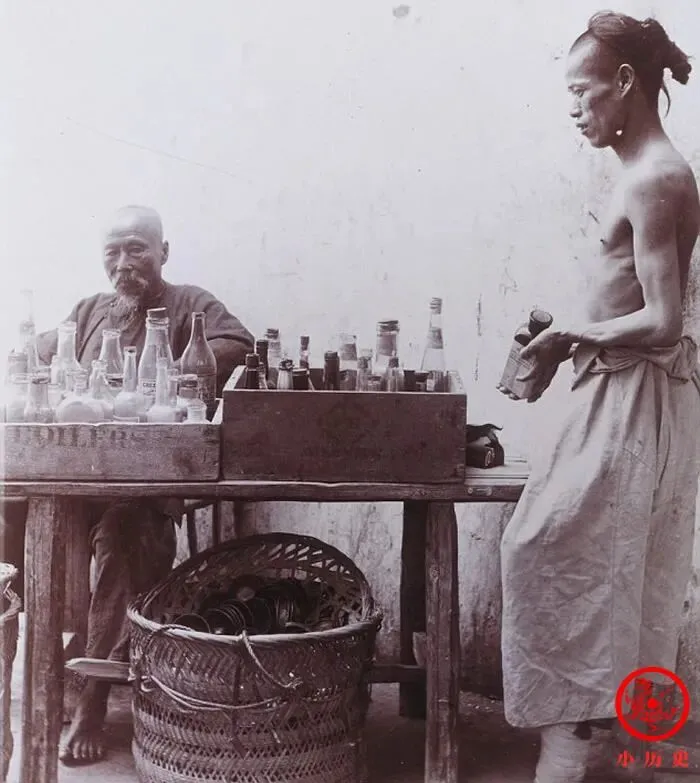 最后一个画面,就是街头卖药酒的摊位了,桌案上一瓶瓶玻璃药酒,他家的生意还算红火,旁边一位男人脚上打着布带,来看推拿跌打药的,以前医疗没现在这么方便,摊贩夸自己有祖传秘方,金创药、接骨酒信口开河,真假全凭一张嘴,买的人当时是抱着希望。家里老人生过病的,看见类似摊子都会优先过去瞅瞅,试试能不能捡点实惠,买完药拿回家,配点姜汤烧一壶,治好治不好都当是个安慰,那年代的街头就是这样,什么人都有,什么故事都能撞见。