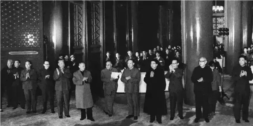 这个镜头下的江青特别精神,头发梳成一道光,脸线分明,黑色领口扣得严严实实,印象里那种特殊气场特别明显,手上摊着会议文件,时不时捻动一下,有种拿捏分寸的劲道,我妈提起来就说,那时候广播一传出会议消息,家里都竖耳朵听,可谁也想不到会有一天照片能翻来翻去给咱做谈资,现在看照片比听广播更有画面了。