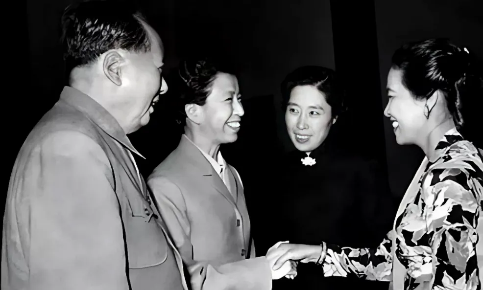 照片里江青被一群文艺工作者围住,前头堆着花束和拍立得留下的合影,她坐中间微笑着,看得出神情比别的场合放松了些,桌上摞着厚厚几本稿件,周围人有的忙签名,有的小声请教,舞蹈演员的服装在旁边晃着颜色,那会儿流行慰问演出,江青喜欢文艺,现场常被问“哪个节目更喜欢”,她耐心点点头,有时会讲讲意见,妈妈说那时候有文艺汇演,大家都自觉排好队,等文工团的人上场,舞台背后总听到一片台词小声背,等节目结束,孩子们才一哄而散。