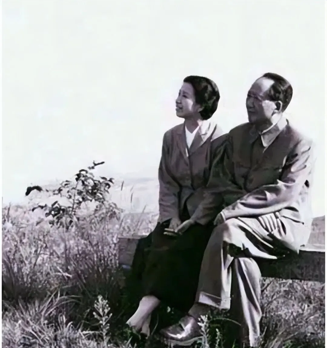这张在山顶的合影,位置选得有点意思,两个人并排坐在石头上,江青裙子底下是一双高跟皮鞋,鞋尖点着草地,看起来一点不拘谨,主席双腿翘着,神色温和,俩人都盯着远处,谁也不说话,身边风刮一下衣角,脚下全是野草,小时候大人常说上山看远总是能想明白事,那时候也没手机,陪家里人坐一会,天也不觉闷,屋里的老相册里,最爱找这种角度的照片。