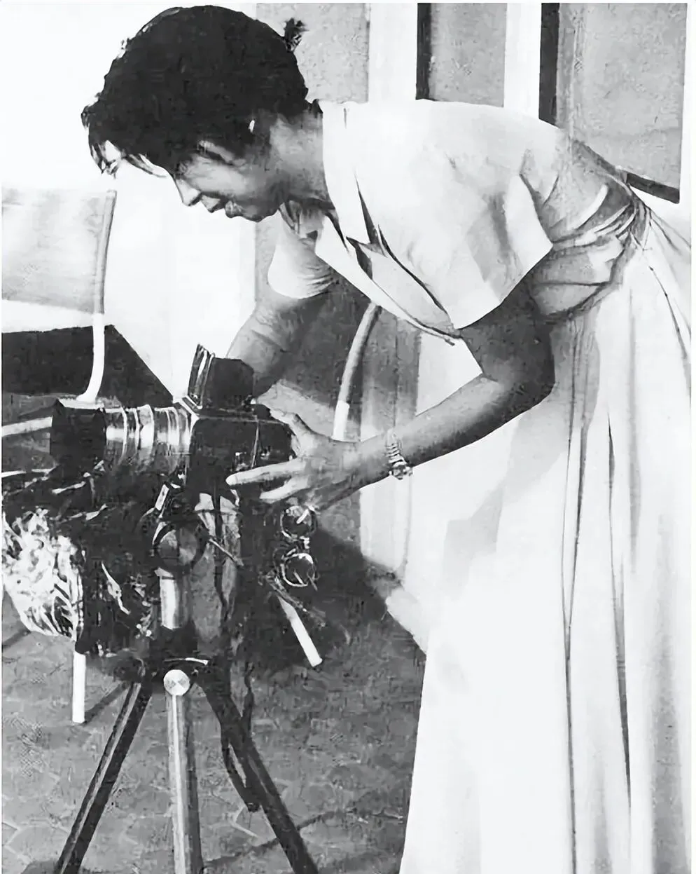 这个摆弄机器的身影是江青自己拍照的样子,衣服束腰收得很明显,站姿一点不拖泥带水,三脚架上搁着老式胶片相机,镜头扶稳,手指头在上头一点点地调焦距,照片还能看见她侧身弯腰,小心翼翼和专注,别人都喜欢被她拍,那会儿但凡能按下快门的可都是有点本事的人,“以前照相要把人喊到门口站好,别动,咔嚓一下就得等洗出来看”,现在手机一划拉,一堆表情包,快得跟什么似的,留念味道全变了。
