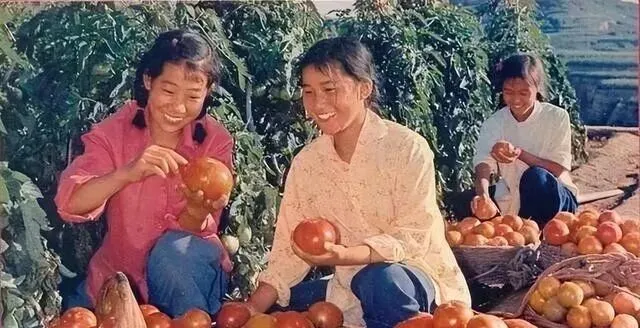 这几位姑娘采摘的架势一点都不输男劳力,手里的大红柿子结得瓷实、圆乎乎,笑容跟果子一样明亮,八十年代那会儿“学大寨”风头正劲,大家还给蔬菜起绰号叫“社员的孩子”,以前闺女不上田间,后来质朴姑娘个个成了种地把式,家里老妈常挂嘴边,“我们小时候哪敢跟地里混”。