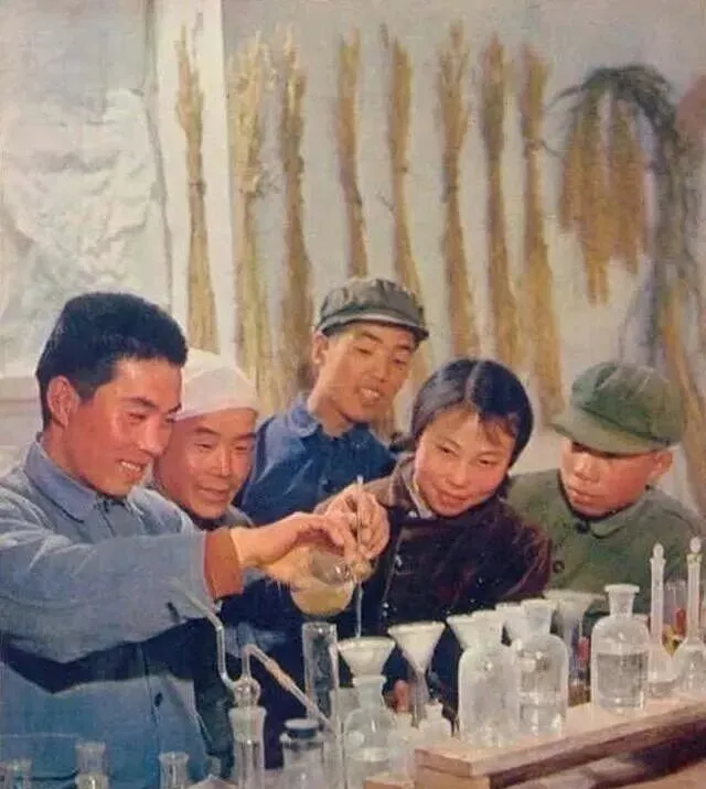 照片中玻璃瓶、试管堆满桌子,几个年轻人正玩命琢磨怎么让庄稼长得快一点,那个年代不光靠苦力,“科学种田”四个字已经有雏形了,现在的农业靠软件,那时候一瓶瓶药水就是“高科技”,我爸说实验是琢磨品种,能多收一斤就值得喊两嗓子。