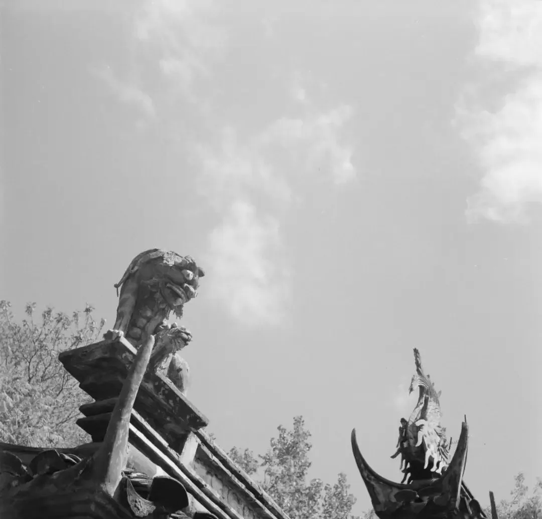 屋檐角上盘着的兽头雕像,唇齿分明,脊背打着弯,老宅子最讲究这些装饰,狮子、龙头顶着祥云,小时候逢雨天,看雨水从兽嘴里哗哗流下,带着一点神秘劲,奶奶讲“房檐上有龙有狮,家里少灾少难”,现在屋顶清一色水泥瓦片,这些泥塑兽头再难见,拍照存张影,也算留个念想吧。
