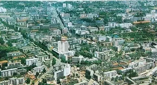 图中这一大块郴州全景,算得上80年代的气派场面,一整个城市颜色鲜明,商场、单位家属楼、学校分布得整整齐齐,最显眼的那栋有圆顶的高楼,当年算“大建筑”,坐公交经过,车上一堆人也要抬头张望两秒,小时候去城里的亲戚家,非得站在窗口往下看个够,觉得天空跟现在的都不一样。