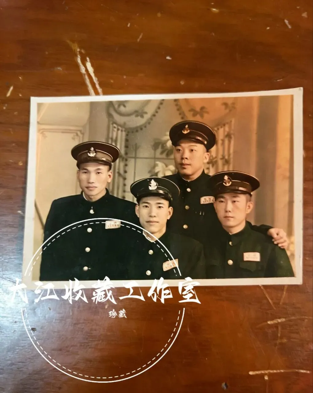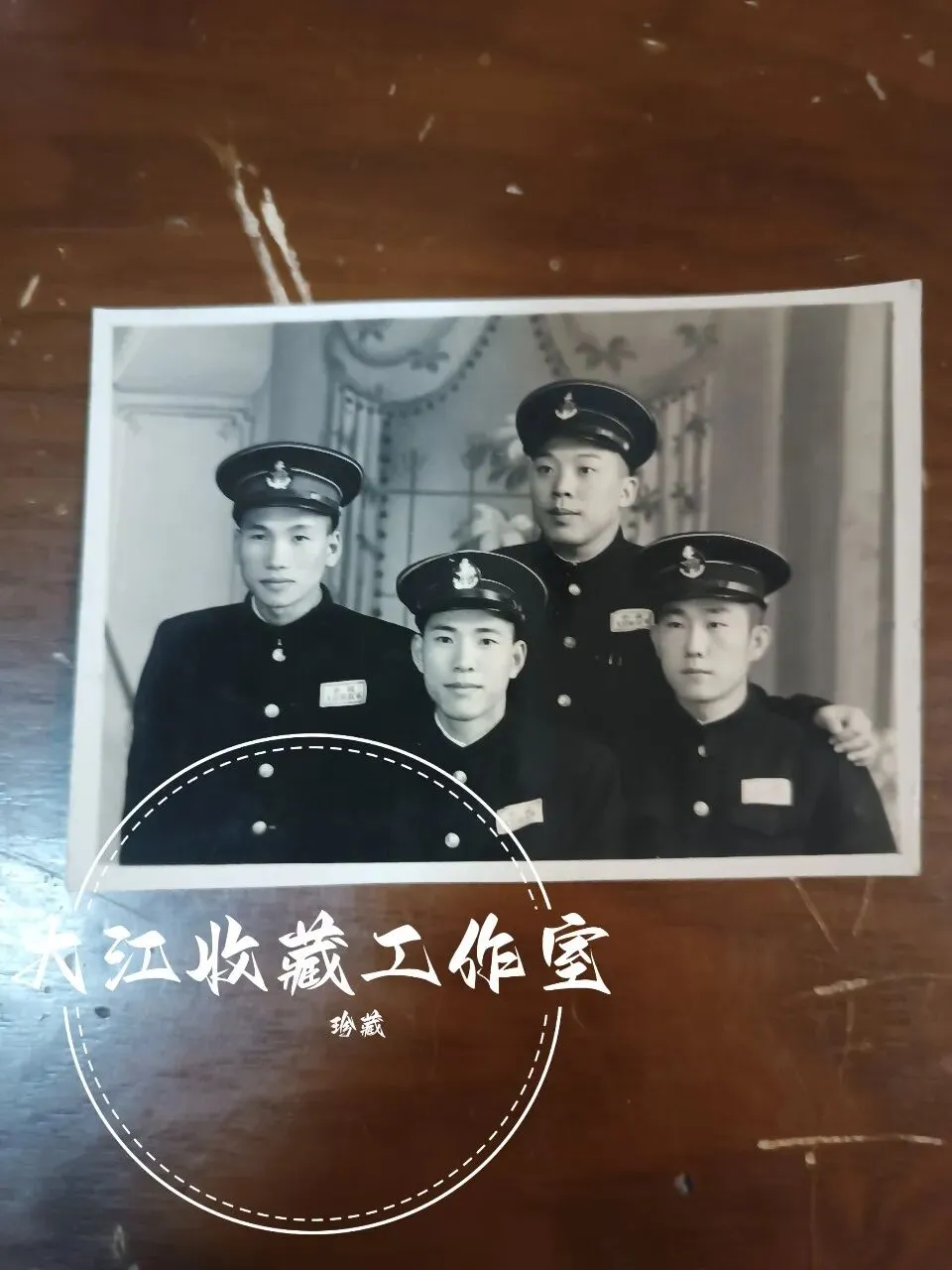 照片中的四位青年,身着新中国第一代海军制式军服:藏青色立领军装、白色圆形纽扣、带海军锚徽的大檐帽,胸前佩戴“中国人民解放军”胸标,每一处细节都镌刻着时代的印记。1949年4月23日,人民海军在江苏泰州白马庙宣告成立,这批50年代的海军官兵,正是人民海军从无到有、从小到大的开拓者。他们告别家乡,投身海防,用青春守护着祖国的万里海疆,照片里并肩而立的身影,是战友间最深厚的情谊,也是那个年代军人最纯粹的担当。