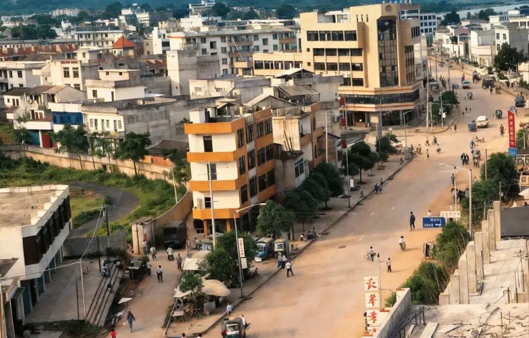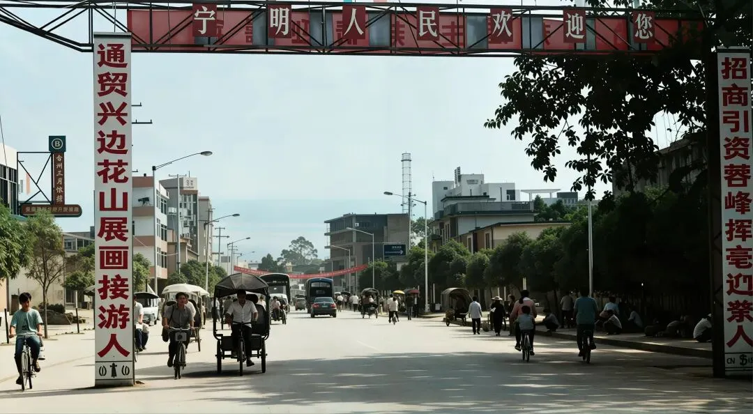 1988年列为全国重点文保单位,2016年入选世界文化遗产,填补中国岩画类世遗空白。如今是国家5A级景区,不仅是镌刻在绝壁上的骆越百科全书,更是传承千年的民族文化瑰宝与中外文化交流的重要名片。1992年时的宁明县爱店镇,爱店镇位于公母山下,与越南谅山省禄平县接壤,1992年设镇。↓爱店边贸互市点地处广西宁明县中越边境,紧邻界碑,与越南谅山省对接,依托爱店一类口岸,是桂西南重要的边境贸易窗口。这里历史上便是边民互通有无的要道,如今已成为规范化边贸平台。