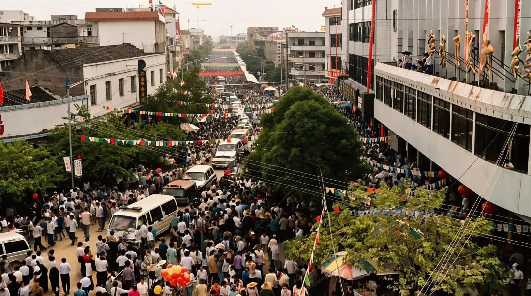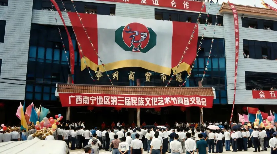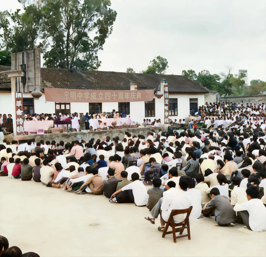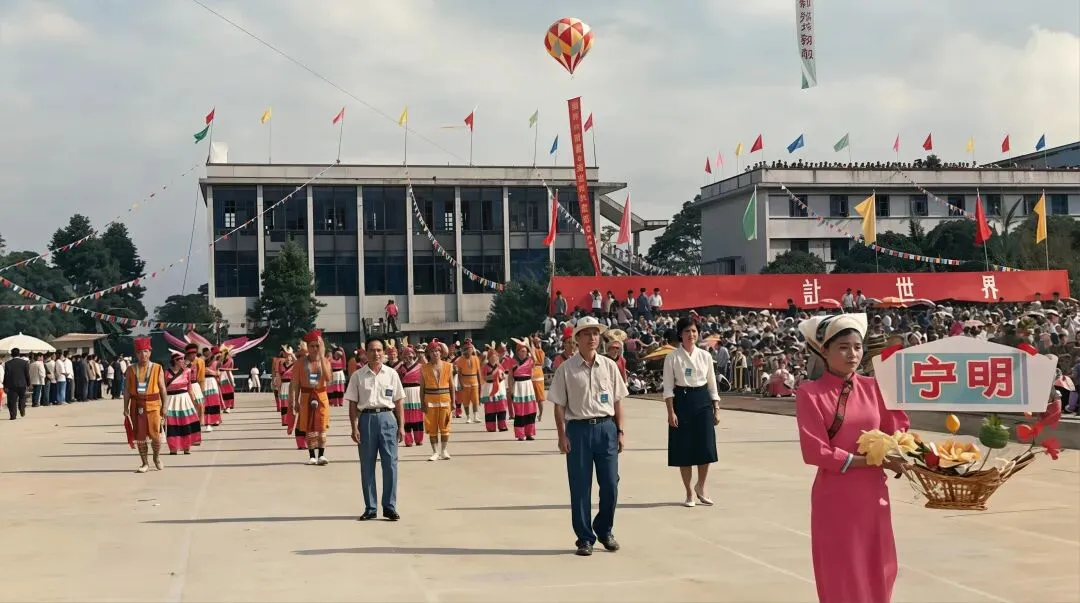 互市点主要交易中草药、水果、农副产品及日用百货,实行便捷通关与免税互市政策,带动当地“互市+落地加工”产业发展,在活跃边境商贸、促进边民增收、推动兴边富民中发挥着重要作用,也是中国与东盟经贸往来的鲜活缩影。1984年4月1日宁明中学举行庆四十周年庆典活动↓宁明县隶属广西崇左市,地处桂西南边陲,是崇左市面积最大县,总面积3705平方公里,辖13个乡镇、3家华侨农场,总人口44.04万,壮族占比超90% 。它是广西陆地边境线最长县,边境线长212公里,与越南接壤,有爱店国家一类口岸及3个边民互市点,是中越边贸重要窗口 。
