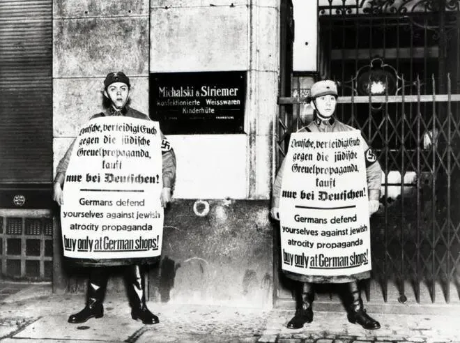 1933 年纳粹上台后,为转移经济危机矛盾、煽动民族主义,策划了针对犹太人的全国性抵制,目标是摧毁犹太商人的经济基础,为后续种族清洗铺路。这次抵制是纳粹反犹政策从舆论煽动走向实际迫害的关键一步,此后《纽伦堡法案》、隔离区、集中营等一系列暴行逐步升级,最终酿成犹太人大屠杀的人类浩劫。