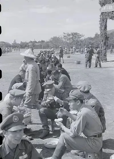这组“毕业聚餐”的照片,恰恰拍摄于这个关键节点:新兵们即将结业,却不知道自己要面对的是一场注定失败的战争;孙立人蹲在士兵中间,脸上带着疲惫的微笑,眼底却藏着对未来的迷茫——他知道,这可能是自己最后一次为国家练兵了。