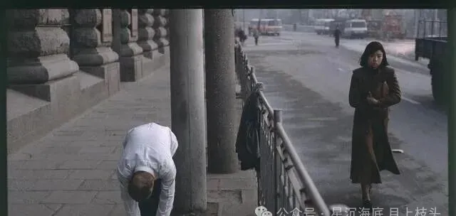 这张照片拍的就是外滩边早晨的脚步声,画面里一个爷叔弯着腰拣东西,后面女士裹着长大衣走过,鼻子边都是空空的马路和老骑楼,原来外滩这带以前人不多,公交车一来一回,擦肩而过带点油烟味,哪像现在成天被游客包得水泄不通,秋天清早石头都透着凉意,手插口袋站那儿等人是常事,大姐总说那会儿穿风衣走路才算时髦,拥挤和热闹都是后来慢慢加上的。