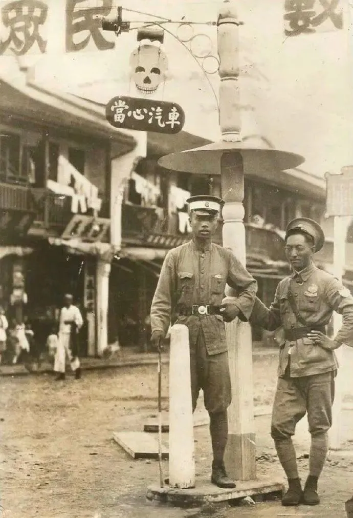 1929年,广州,国民政府时期的“交通警察”,他们多由军人转任,因此保留了军装样式。1929年国民政府完成形式上的统一后,开始在大城市推行近代化交通管理。
