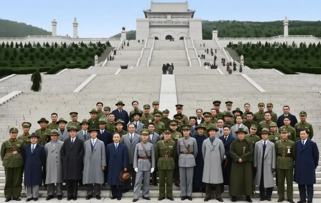 1931年4月20日至25日,全国航空会议在南京召开,蒋介石、国民政府军政部次长曹浩森及各地军政要员75人出席会议。这是民国时期首次全国性的航空专题会议。在开幕式结束后,全体代表前往中山陵谒陵,并拍摄了这张合影。
