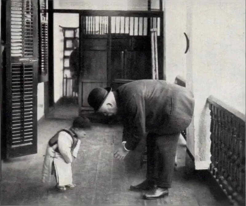 这是拍摄于一百多年前的杭州广济医院(浙江大学医学院附属第二医院的前身),照片中的这个胖胖的英国人正是时任院长梅滕更医师。在查房途中,一位小患者向他鞠躬致意,熟悉中国礼仪的梅滕更也深深鞠躬回礼。