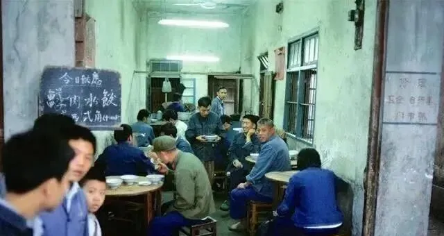 照片里那块老黑板,写着今日供应:红烧肉、炖鸡块、家常豆腐,旁边还贴着细则说明,什么“每桌限点一道荤菜”这种规矩,里面一桌接一桌坐满,穿蓝色灰色中山装的多,端着大碗呼啦啦地吃,服务员全靠脑子记菜,边走边吆喝,“哪个桌要三份大排面自己来拿”,声音一高屋里都能听见,遇上大家伙聚餐,得提前一天订座,真有点像过年那阵盛大。