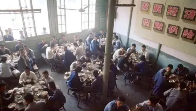 照片里一屋子人,桌桌坐满,端着搪瓷碗使劲扒饭,天花板上风扇咯吱咯吱地转,墙壁上还是标语,不管小孩大人,吃饭都是抢时间,饭点一来全厂的人都得往这挤,人还没到,筷子先敲桌子“快点快点”,这气氛搁现在谁见过,有时候俩桌拼一盘大菜,自己添米饭不断地添,边吃边聊最近哪家发小麦,能多分二两粮票都能乐上半天。
