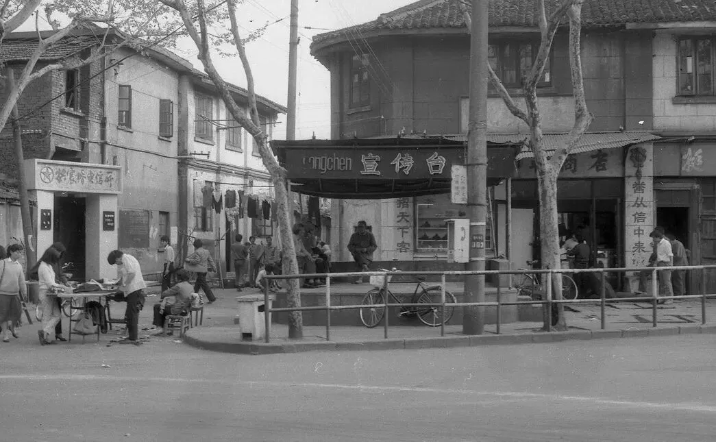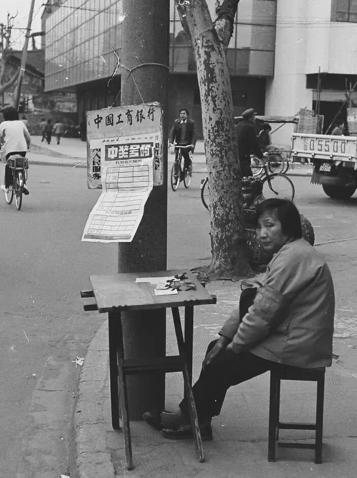 照片上有工商银行的小牌子,看样子是宣传有奖储蓄的。可能是那时候银行拉储的一种方式,跟现在找客户经理办业务送食用油差不多。牌子上贴着的中奖号码,瞬间想起了跟着大人后面抽奖票的场景!关键这位工作人员还戴着“治安纠察”袖箍。