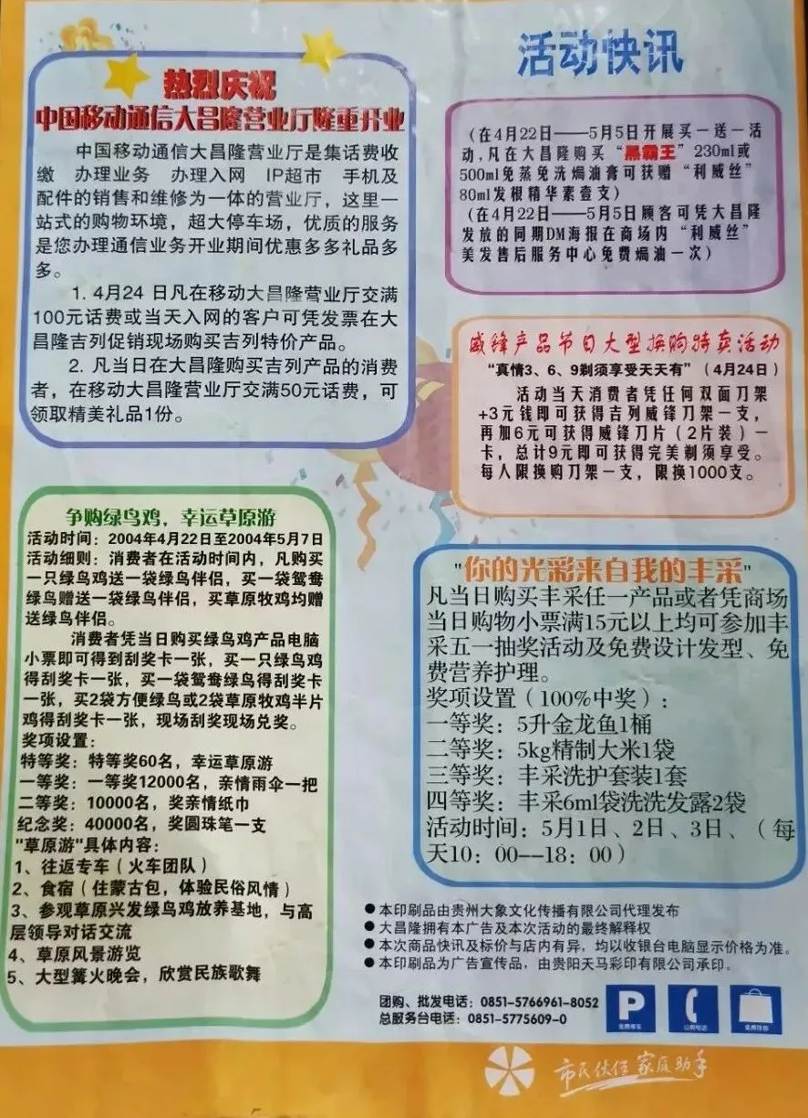 曾经的贵阳大昌隆商业广场,是城市里热闹非凡的所在。记忆中的大昌隆,大门敞开,迎接八方来客。门口宽敞,甚至还能停车,方便着每一位前来购物休闲的人。踏入大昌隆,入口处人来人往,热闹的气息扑面而来。超市里更是人山人海,货架上琳琅满目的商品,吸引着顾客们驻足挑选。服务台前,工作人员热情地解答着疑问,为顾客排忧解难。那一幅幅色彩鲜艳的海报,张贴在显眼的位置,传递着最新的促销信息,点燃着人们的购物热情。