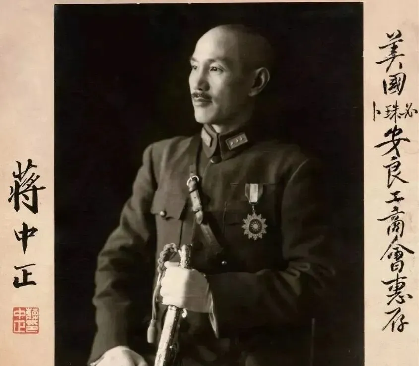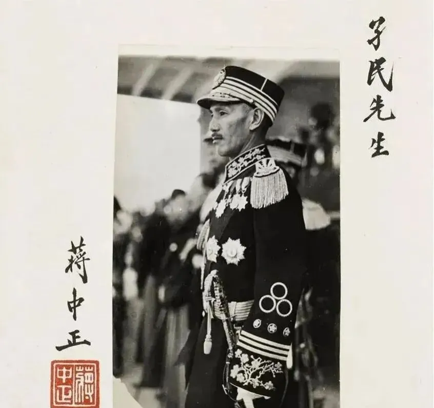 第一张图里的这个人不用细说,蒋介石三个字写得有棱有角,字边上那道红印章还挺显眼,照片里他穿着军服,胸前挂着勋章,白手套一戴,神情泰然,整个人站在那里就像根标杆,妈妈以前翻老照片的时候总说,这种老军装比现在西装还讲究,钮扣锁得死紧,腰带一根都不走神,小时候模糊听过,大将风范这种话,原来就是这种场面。